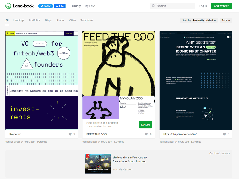 Land-book est une galerie de webdesign riche par des références d’inspiration attrayantes, qui sont déposées par les designers de la communauté. Ces professionnels exposent leurs conceptions de sites web, tout en respectant les réglementations en vigueur. Cette plateforme adopte des conditions d’utilisation strictes, dans le but de normaliser la soumission des designs des concepteurs d’interface et de les protéger contre le spam et la violation.