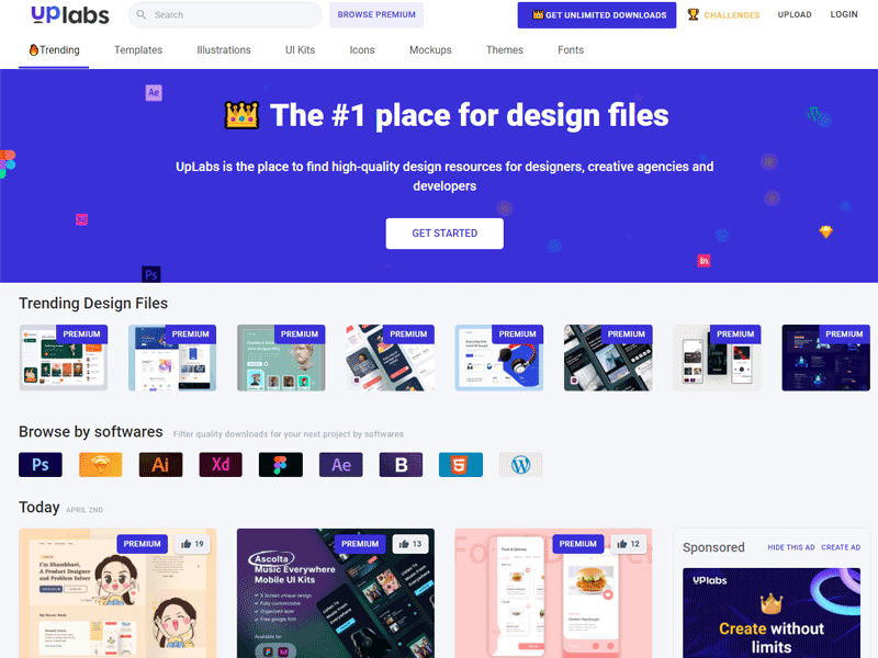 Uplabs est un vivier considérable de ressources en UI design, qui est destiné aux designers d’interface, aux agences web et aux développeurs. Cette plateforme rassemble différentes créations : des mockups, des thèmes, des icônes, etc, qui sont disponibles pour achat ou téléchargement en illimité. Elle permet aussi aux utilisateurs de créer des collections pour y enregistrer les interfaces qui les stimulent.